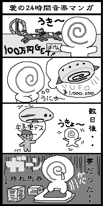 | 大阪のインディーズレコードレーベル「イマジンレコーズ」より発行されていた会報誌(現在休刊)で連載していた4コマ漫画です。この連載がホームページを始めるきかっけになりました。 |